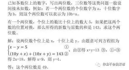 已知各數(shù)位上的數(shù)字,寫出兩位數(shù),三位數(shù)等這類問題一般設(shè)間接未知數(shù),例如:若一個兩位數(shù)的個位數(shù)字為a,十位數(shù)字為b,則這個兩位數(shù)可以表示為10b+a。